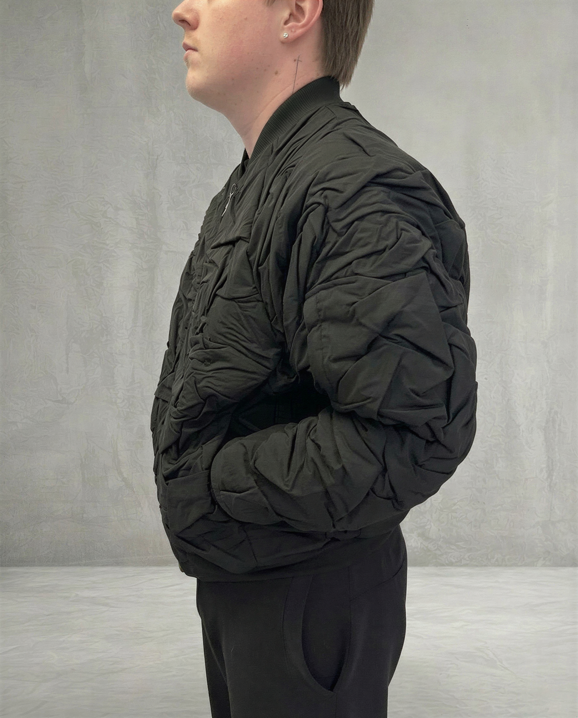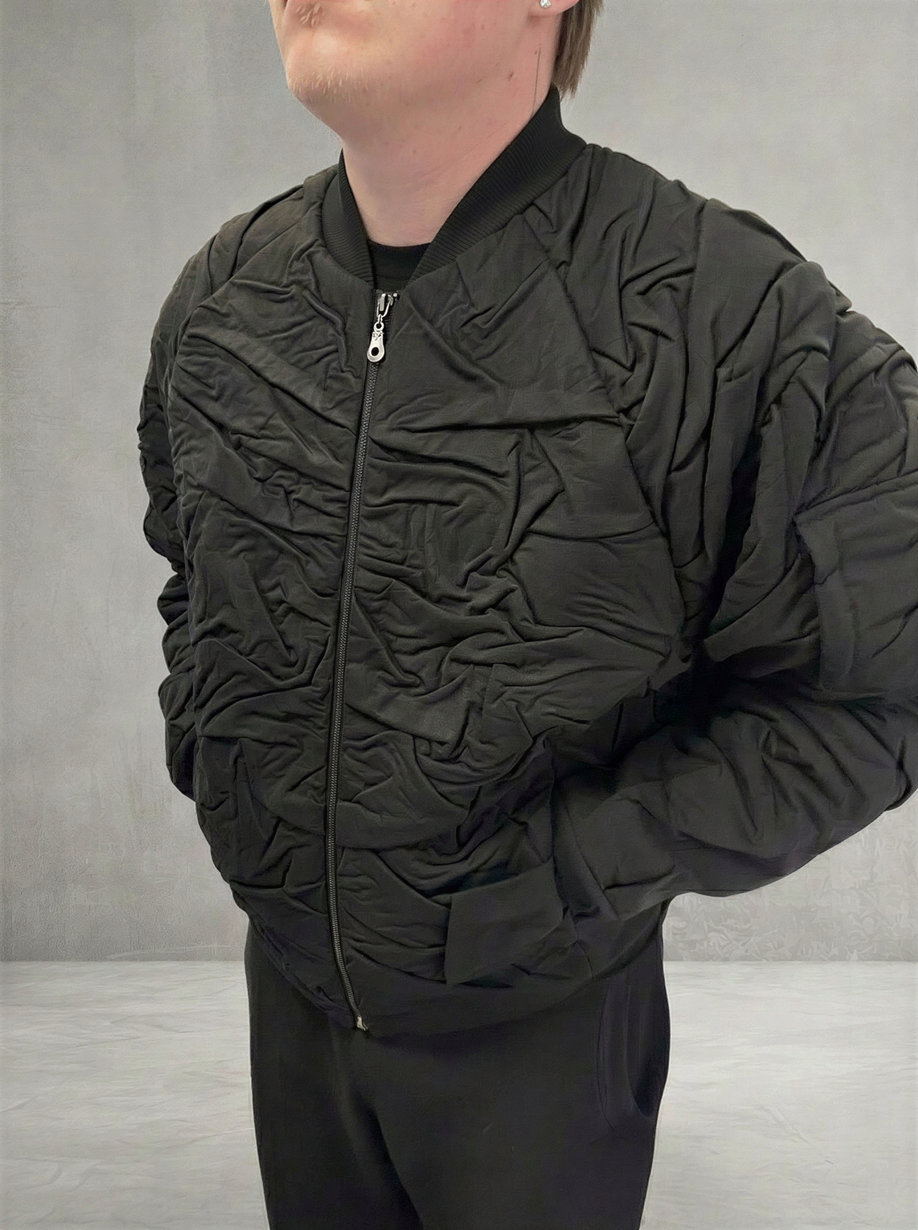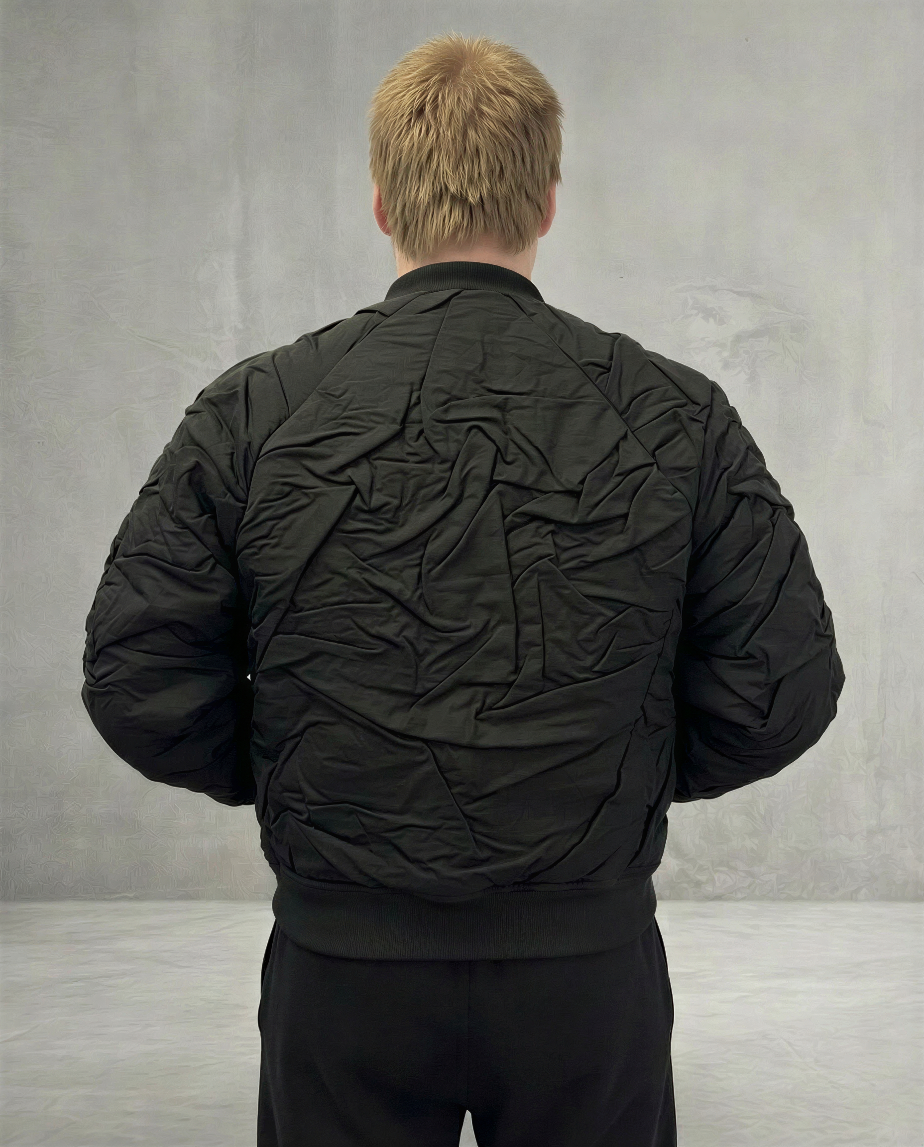 Бомбер, созданный в коллаборации с начинающим дизайнером Кириллом Синицыным, — это сочетание смелой идеи и продуманной эстетики. В модели отражён авторский взгляд молодых дизайнеров на современный стритвир: продуманная эстетика и особое внимание к деталям.
