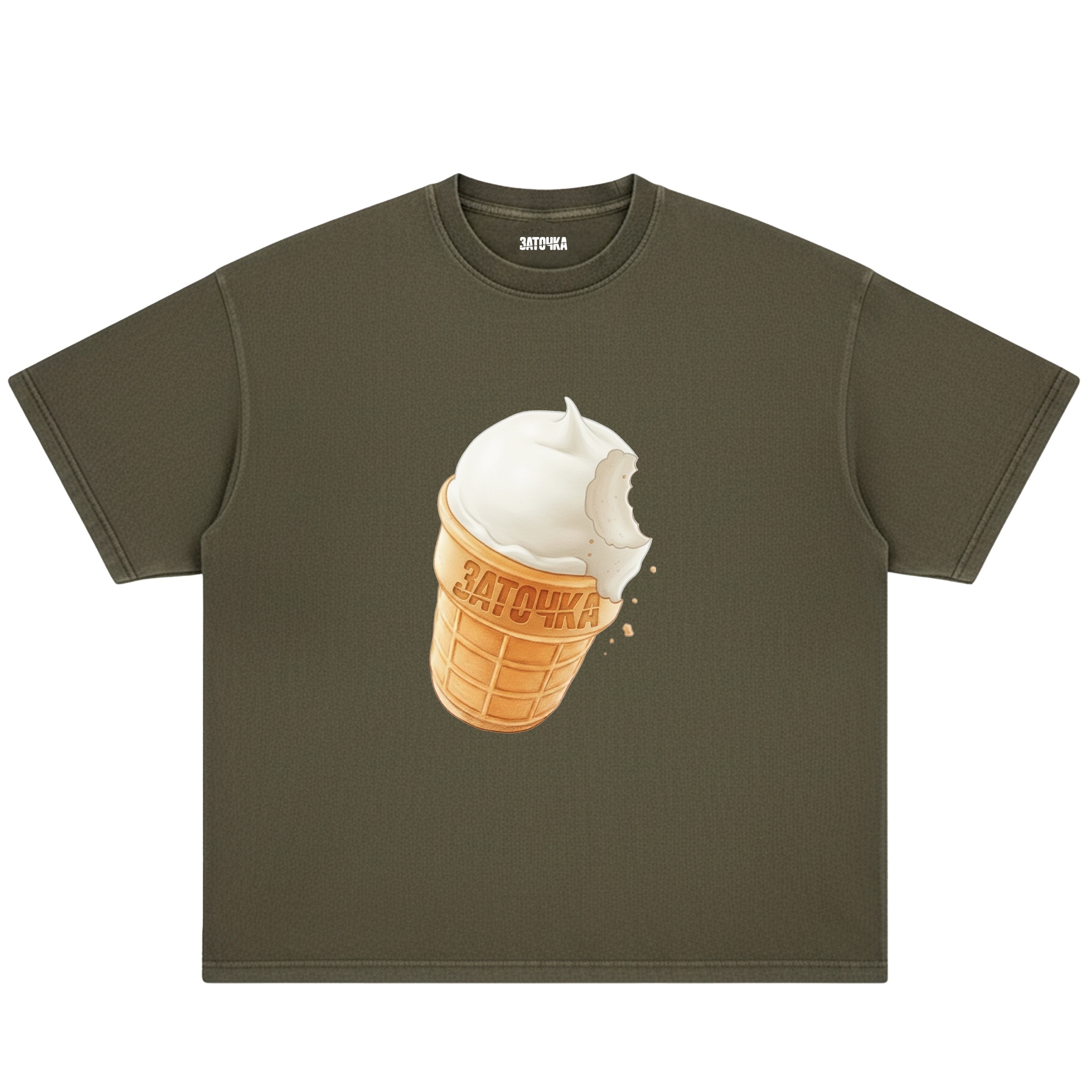 Оверсайз футболка приспущенная линия плеч, втачной рукав, принт шелкография.
